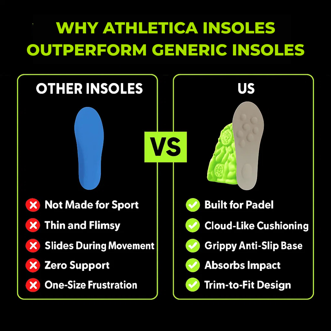 Unlike generic insoles, Athletica is built to support every sprint, pivot, and jump. Giving you stability and enery when you need it most.